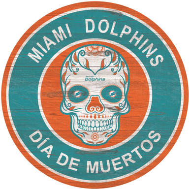 Miami Dolphins Sugar Skull 12" Circle Sign