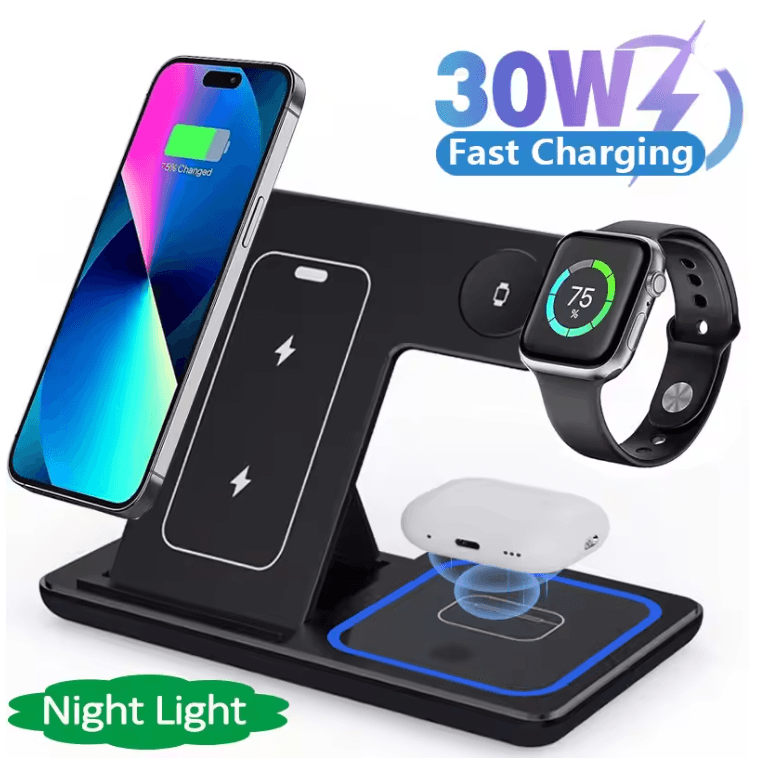 30W LED Fast Wireless Charger Stand 3 In 1 Foldable Charging Station For IPhone Apple Watch And AirPods c