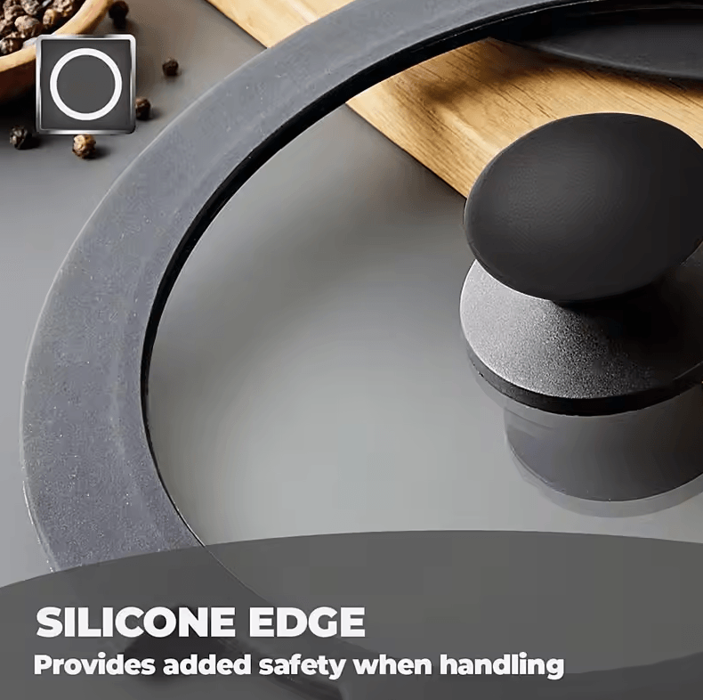 Universal Silicone Pot Lid Food Grade Tempered Glass Pan Cover black 7.87in