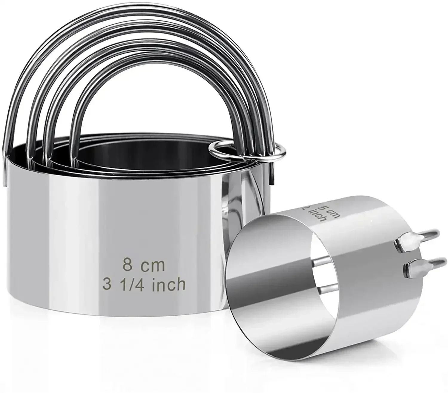 5 Piece Round Stainless Steel Biscuit Cutter Set With Handle circular