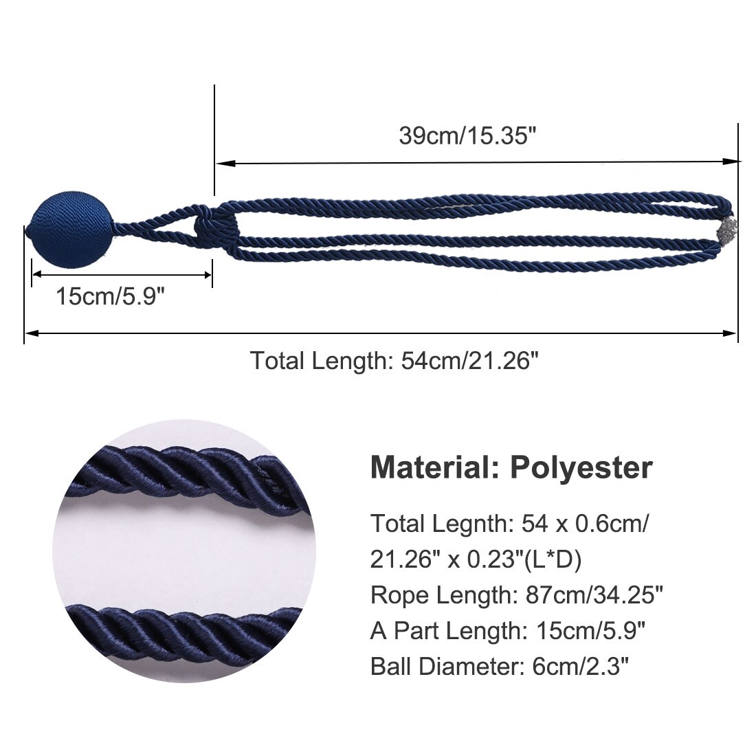 2pcs Magnetic Curtain Tieback Holdback Decorative Rope Curtain Holder - Dark Blue