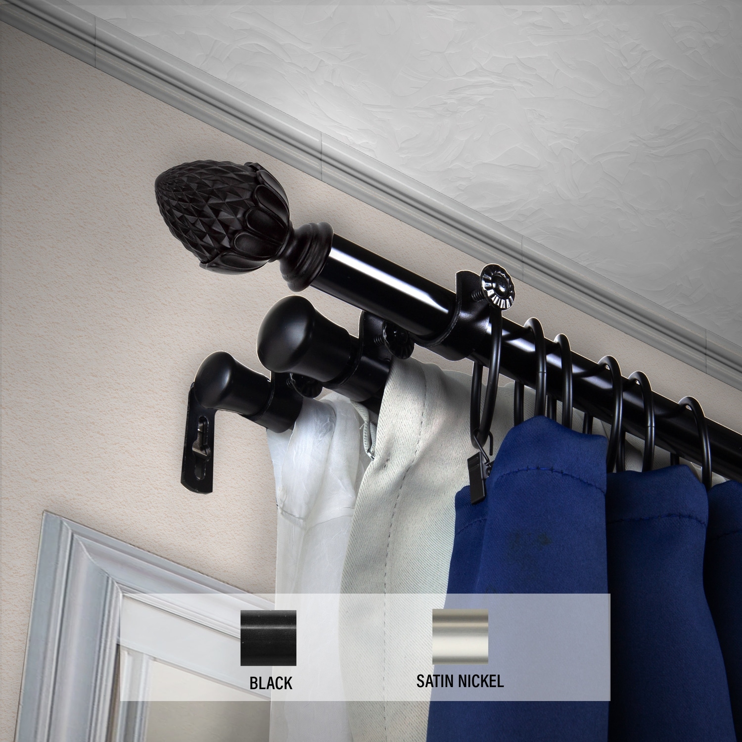 Thermaplus Decorative Blackout Curtain Rod Set with Double Cap Finial