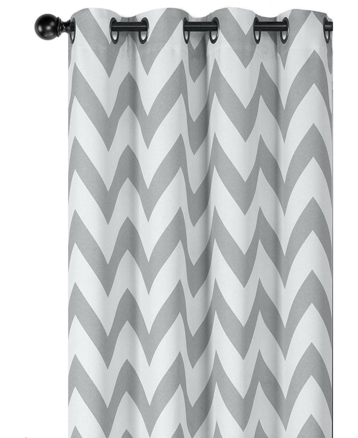 GoodGram 2 Pack: Hotel Thermal Grommet 100% Blackout Curtains - 52 in. W x 63 in. L, Burgundy - Chevron gray