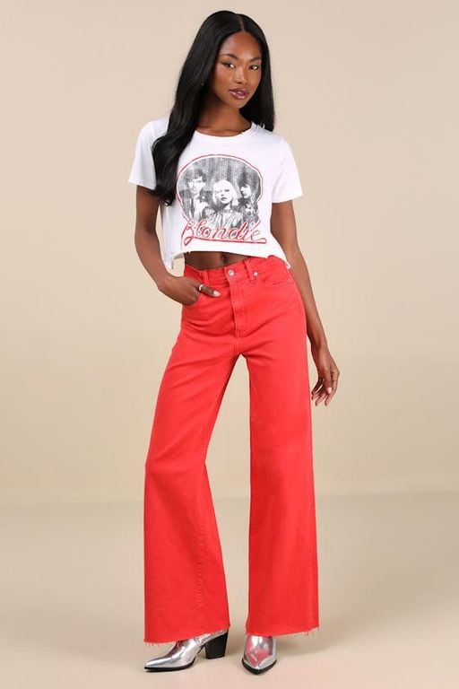 Far Out High-Rise Raw Hem Wide-Leg Jeans - Red - Daze Denim Jeans
