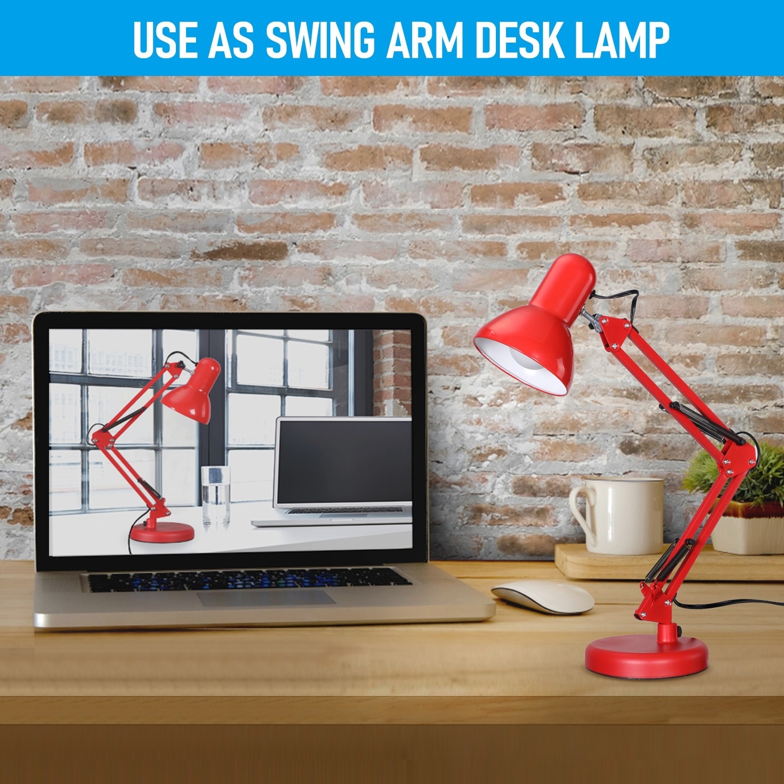 Adjustable Metal Desk Lamp with Clamp, Swing Arm, Gooseneck, E26 Base