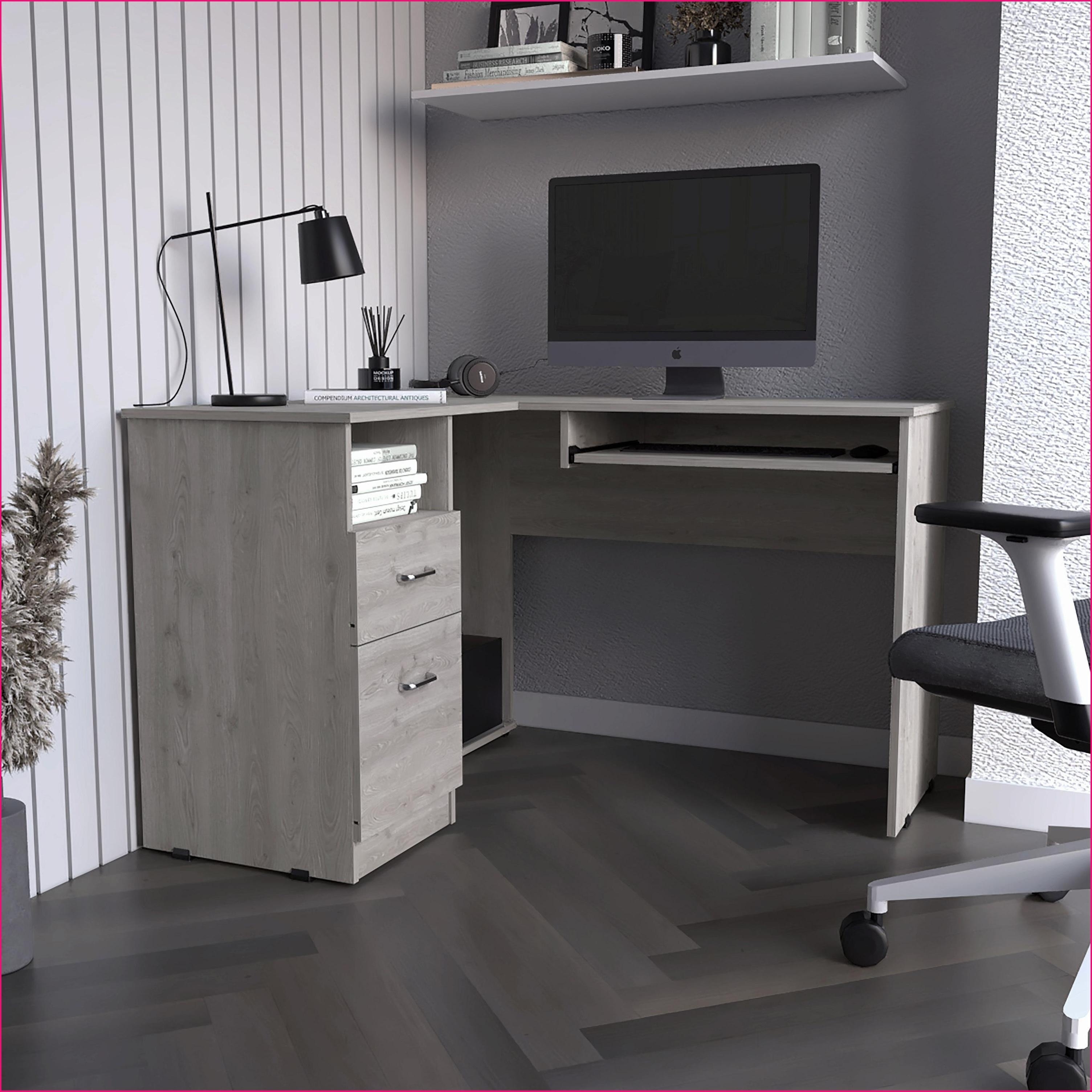 Desks L-Shaped Bradford with Keyboard Shelf, Light Gray, Particle Board