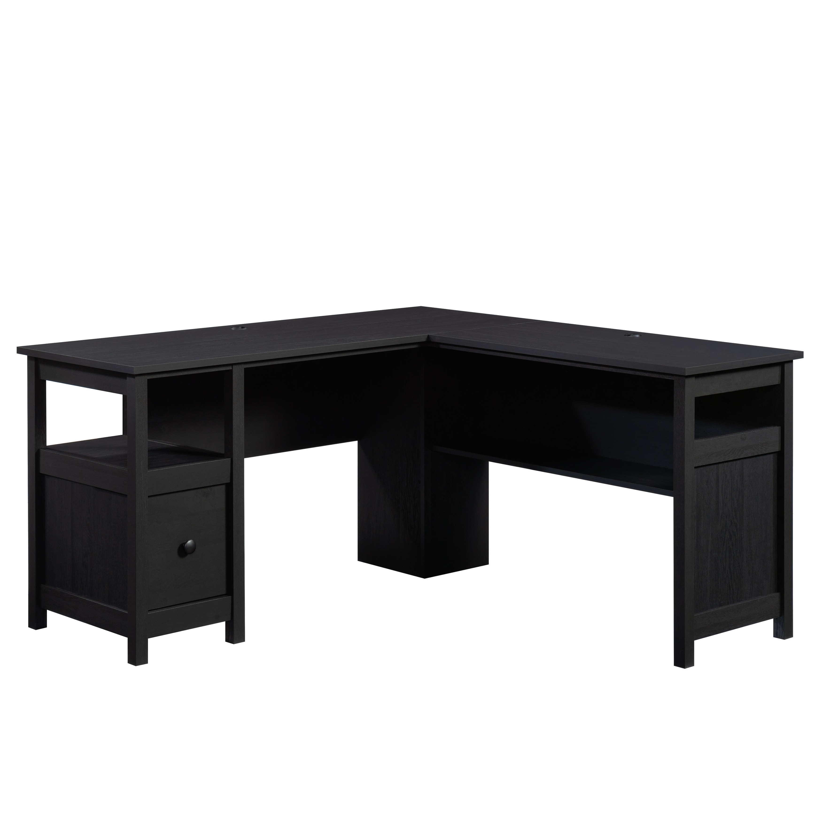 Black L-Shaped Desk with File Drawer - Compact 59" x 59" Corner Desk, Cord Management & Open Shelf