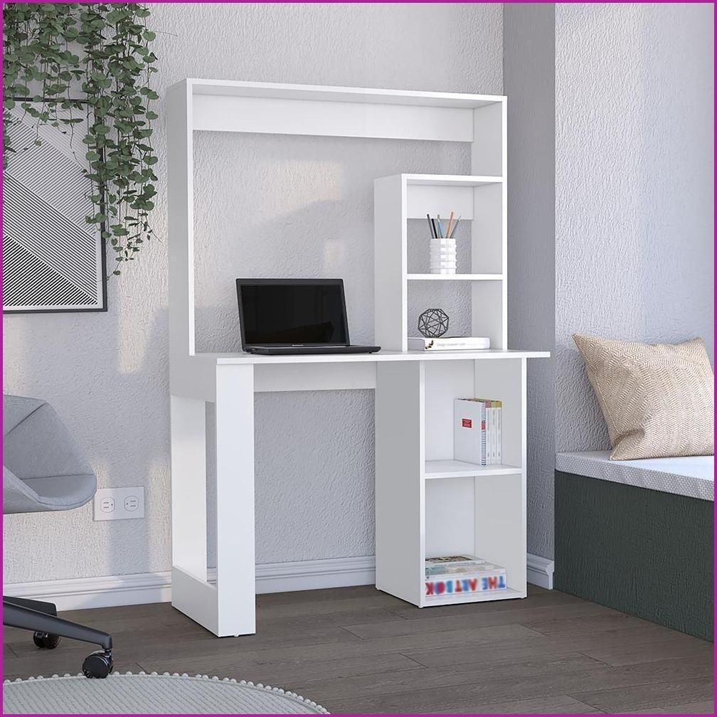 Desks with Hutch and Shelves, 38.8inW Work Surface for Home Office, White, Engineered Wood