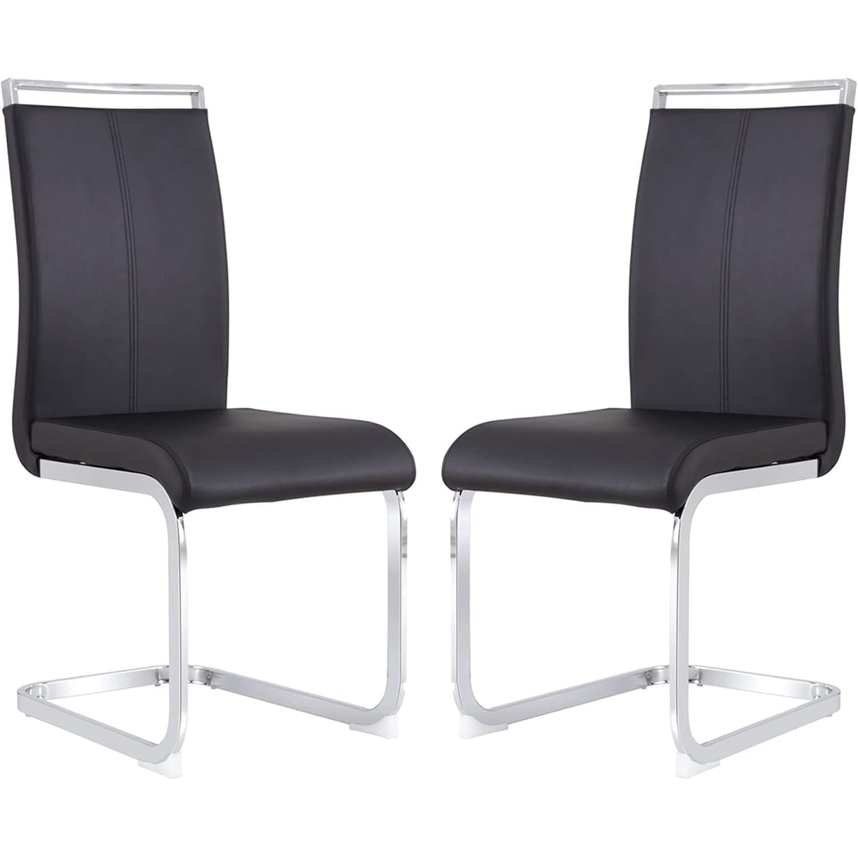 Modern Metal Dining Chairs Set with Faux Leather Seat, High Back, and Chrome Legs (Black, Set of 2)