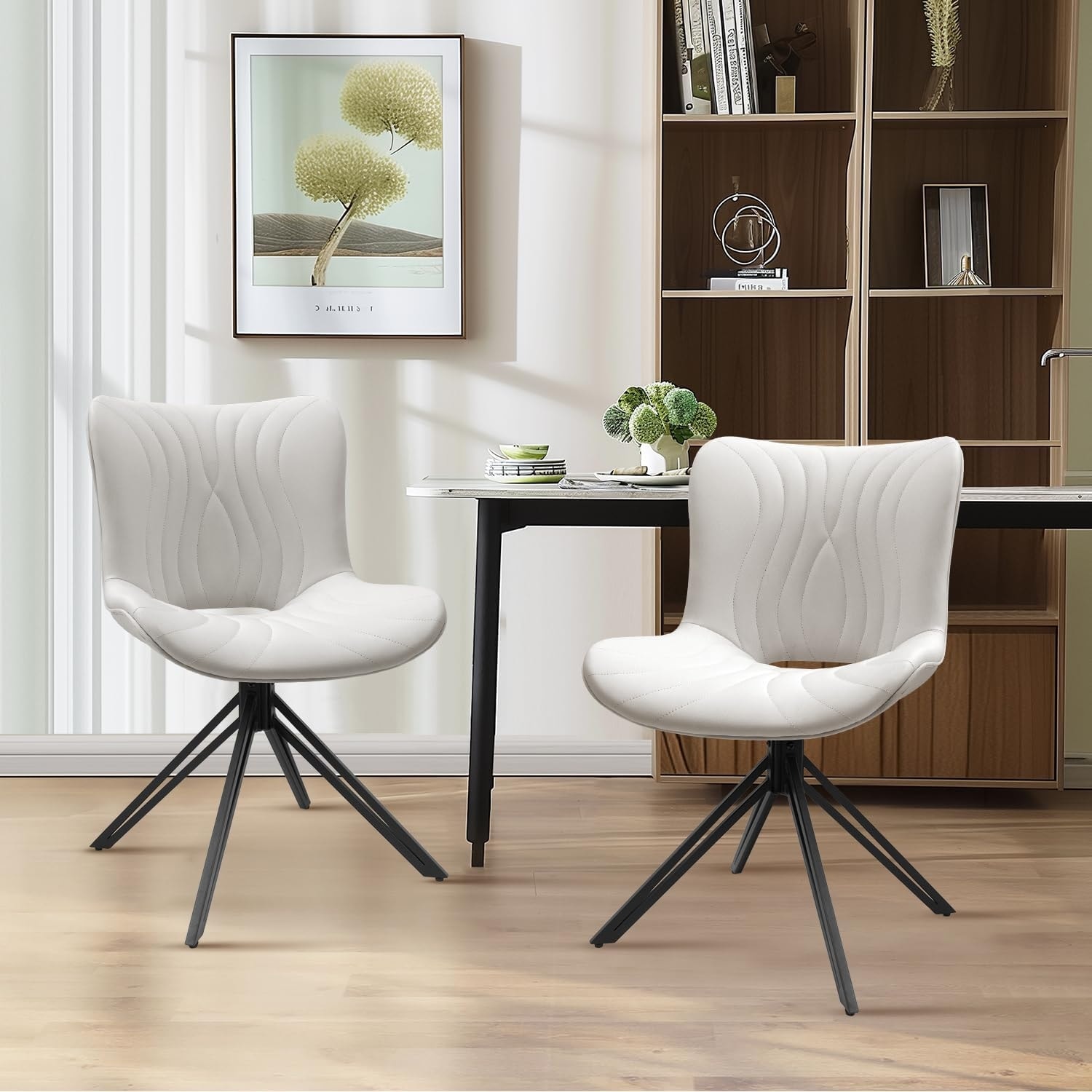 Set of 2 Swivel Upholstered Modern Dining Chairs with Metal Legs, Armless Faux Leather, White