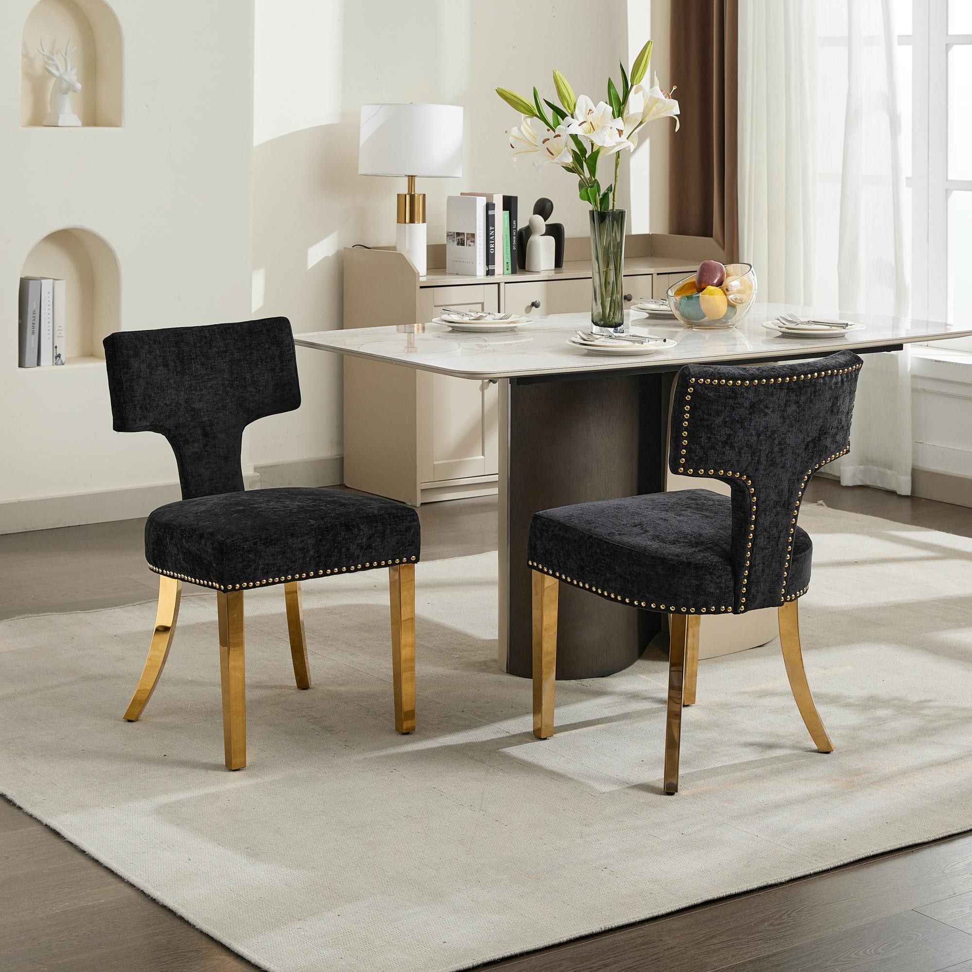 GDF Studio - Mid-Century Chenille Upholstered Dining Chairs with Curved Back & Golden Stainless Steel Legs, Set of 2
