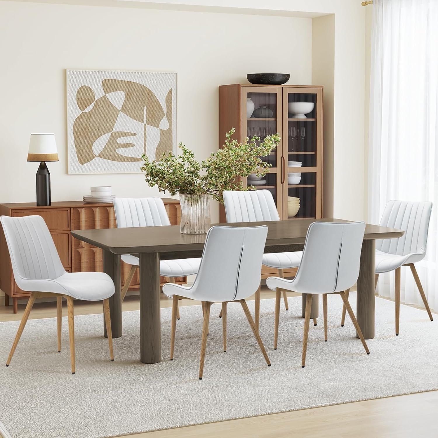 Modern Faux Leather Dining Chairs Set of 6 with Metal Legs, Comfortable Kitchen Chairs for Living Room, Light Grey