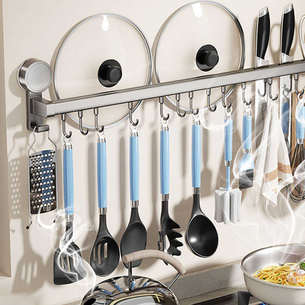 Wall Mounted Kitchen Hook Rack, No Punching Wall Hangers, Kitchen Utensils Rack, Spoon Shovel Chopping Board Storage grey 50cm