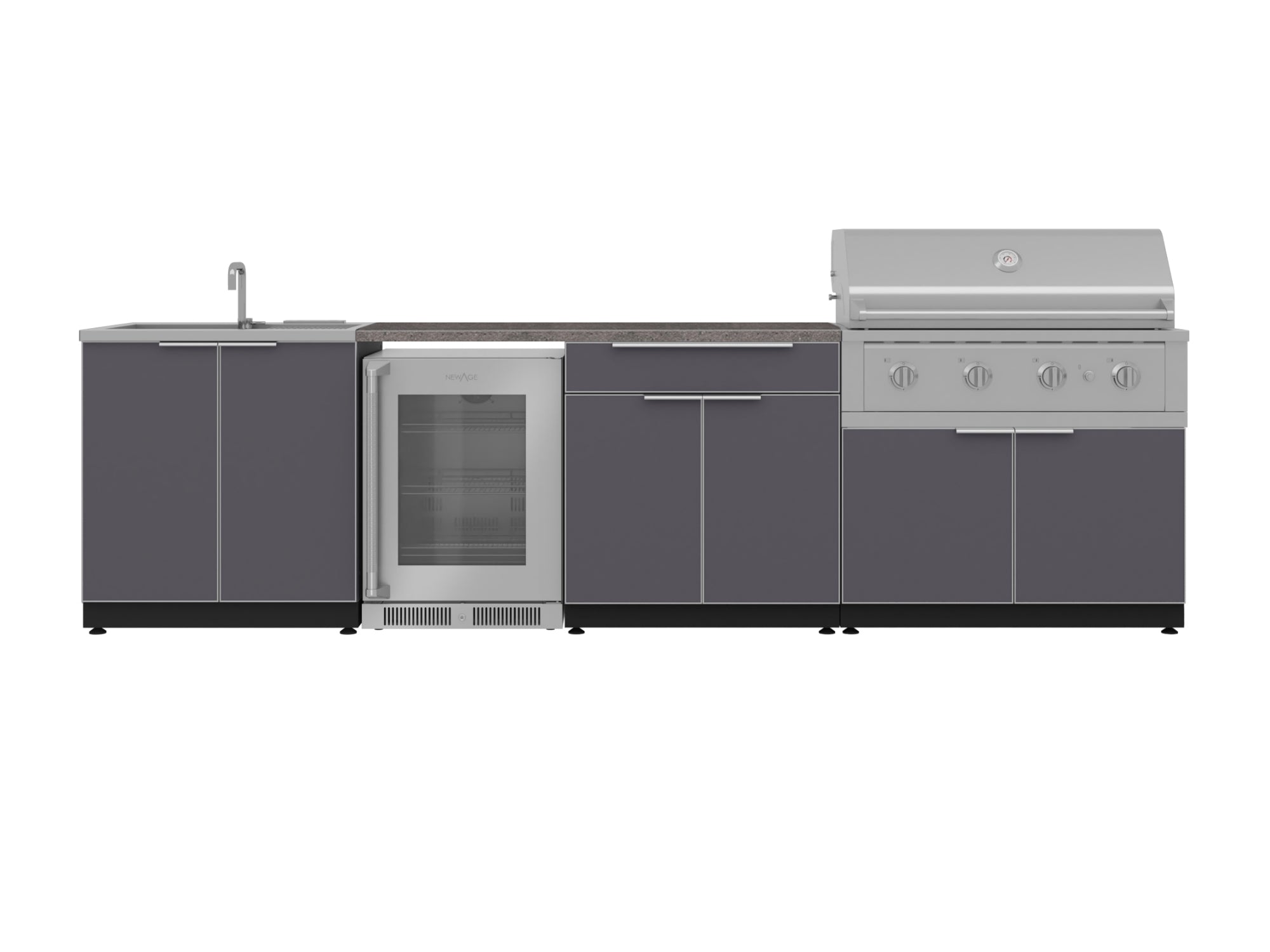 NewAge Outdoor Kitchens Aluminum 5-Piece Cabinet Set with Bar, Sink, Grill Cabinet, Platinum Grill, and Countertop