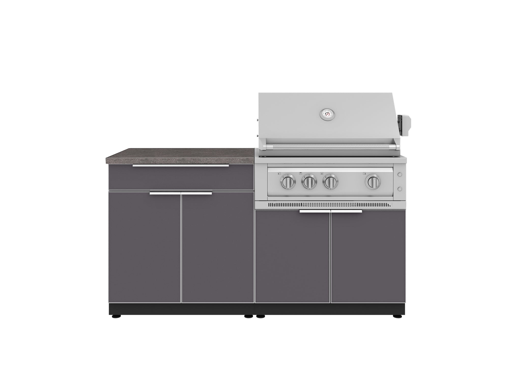NewAge Outdoor Kitchens Aluminum 4-Piece Cabinet Set with 3 Drawer, Grill Cabinet, Platinum Grill and Countertop