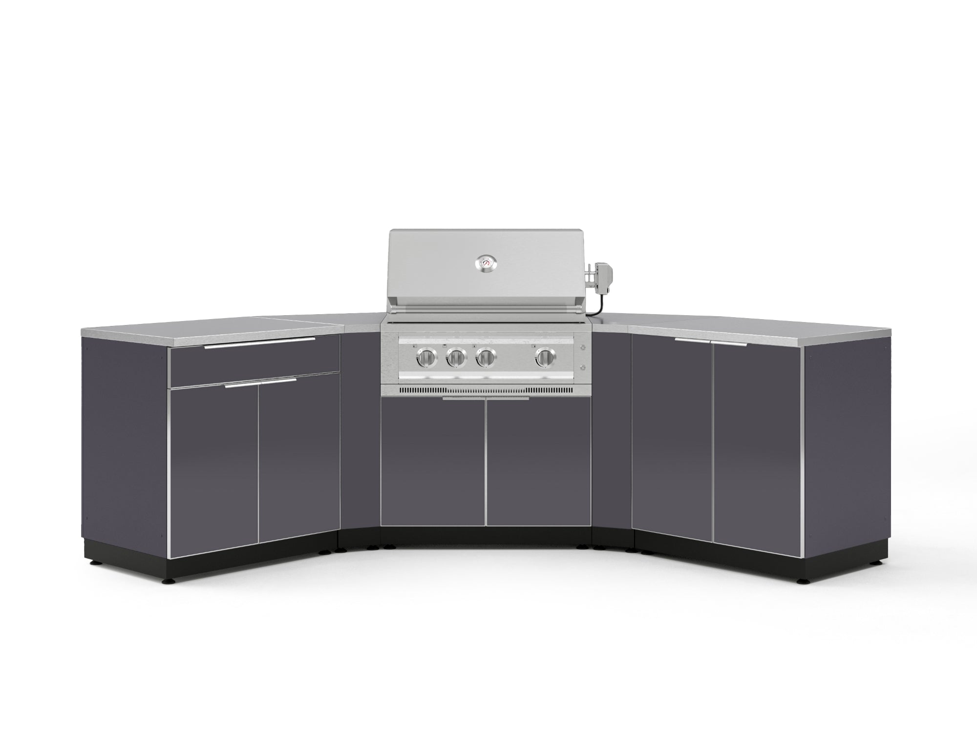 NewAge Outdoor Kitchens Aluminum 7-Piece Cabinet Set with 2 Door, Bar, Corner, Grill Cabinet, Platinum Grill, and Countertops