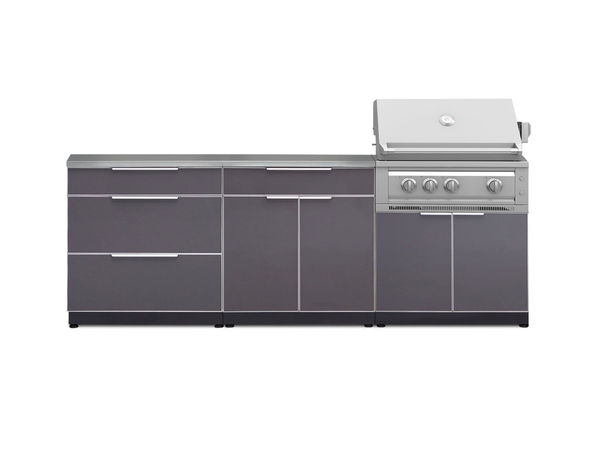 NewAge Outdoor Kitchens Aluminum 4-Piece Cabinet Set with 3 Drawer, Grill Cabinet, Platinum Grill and Countertop