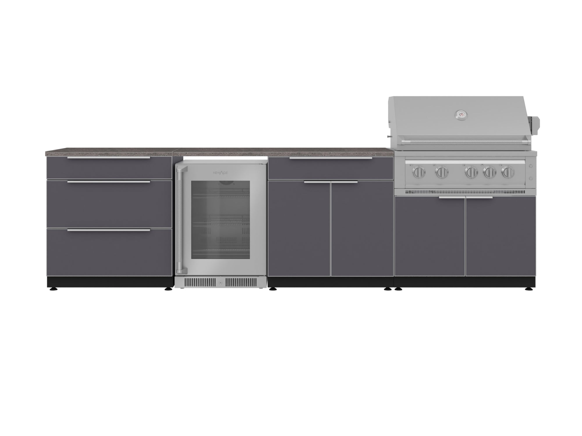 NewAge Outdoor Kitchens Aluminum 5-Piece Cabinet Set With 3 Drawer, Bar, Grill Cabinet, Platinum Grill and Countertop