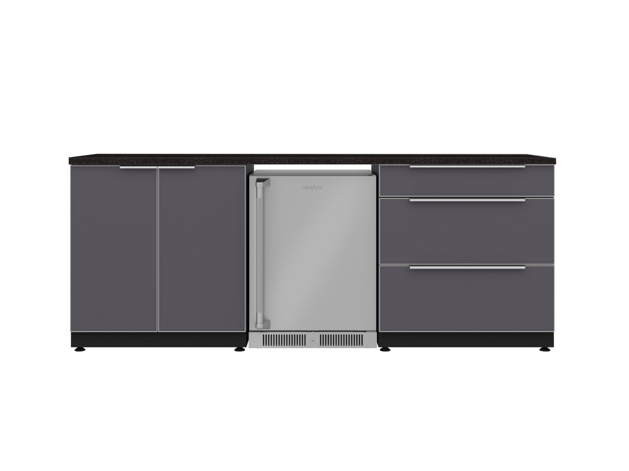 NewAge Outdoor Kitchens Aluminum 5-Piece Cabinet Set with 3-Drawer, 2-Door Cabinet, Countertops and Fridge
