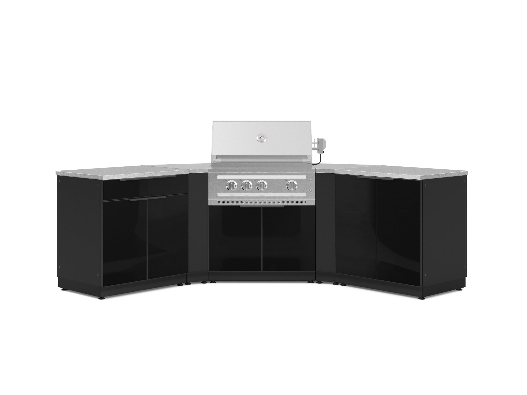 NewAge Outdoor Kitchens Aluminum 7-Piece Cabinet Set with 2 Door, Bar, Corner, Grill Cabinet, Platinum Grill, and Countertops