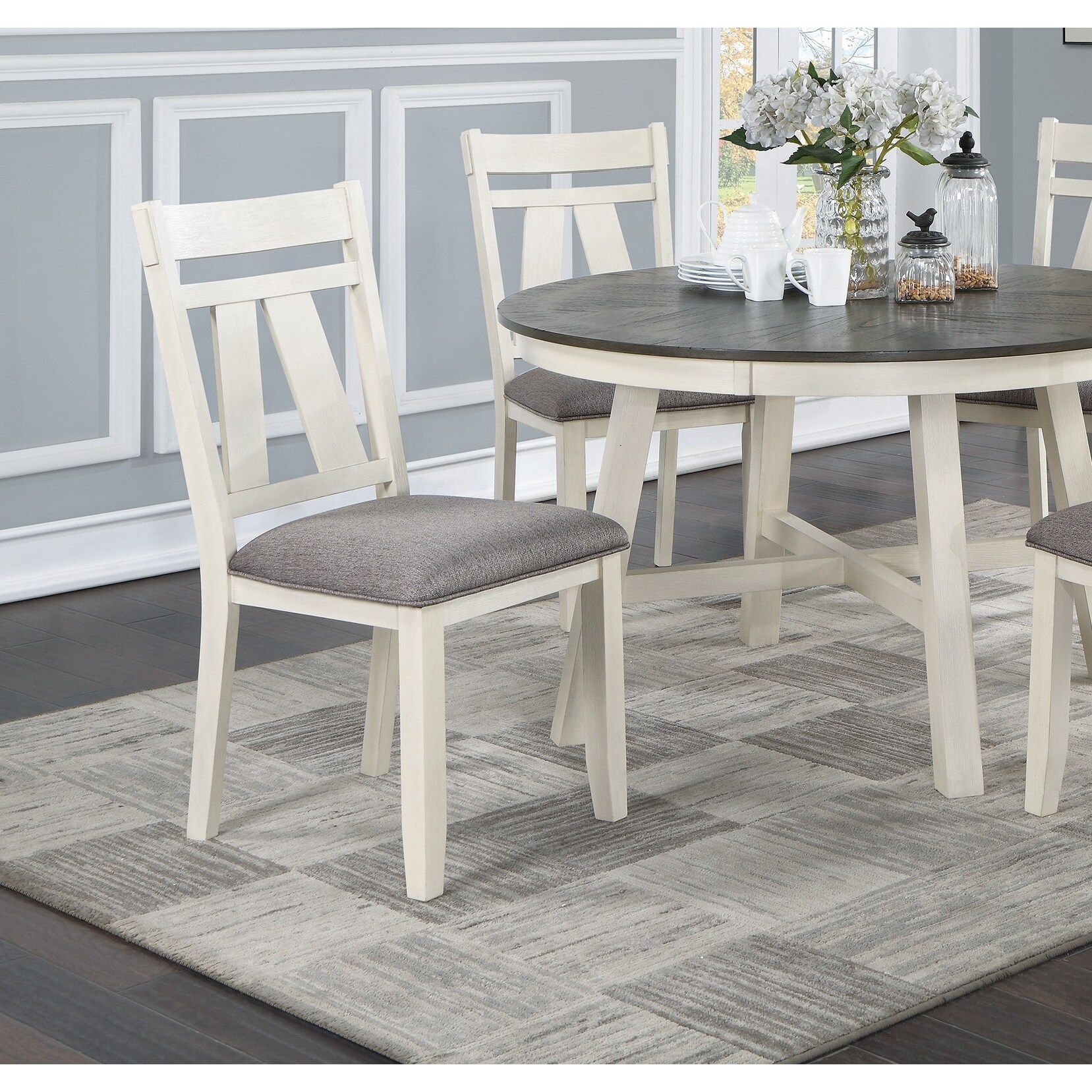 Dining Room Furniture 5Pc Dining Set Round Table And 4X Side Chairs Gray Fabric Cushion Seat White Clean Lines Wooden Table Top