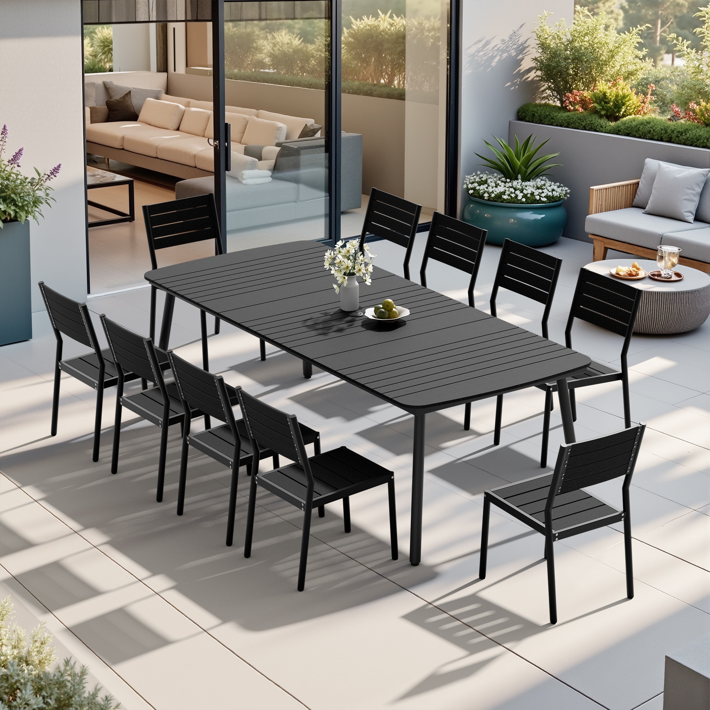 11-Piece Set Outdoor Patio Aluminum Dining Table and Stackable Dining Chairs