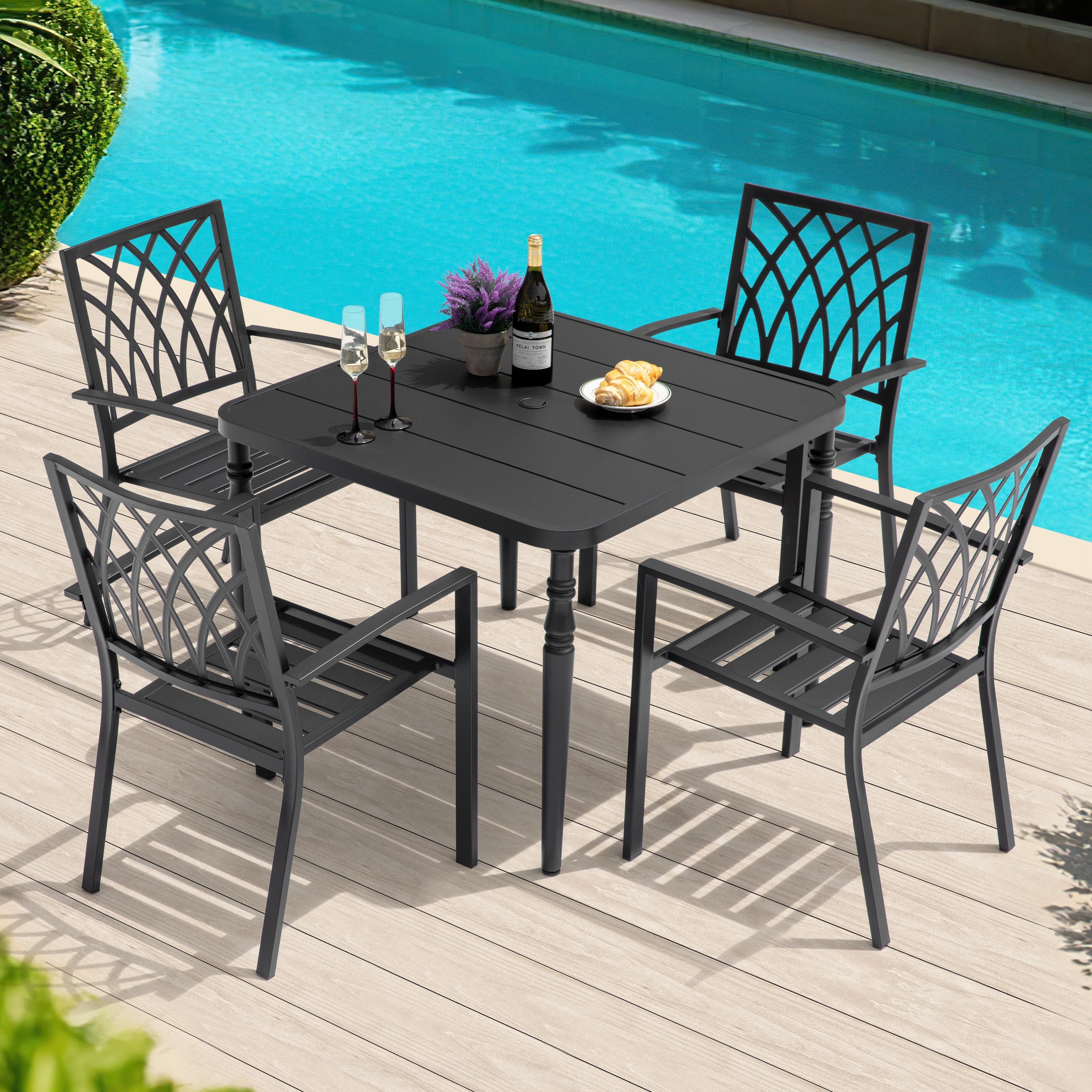 5PCS Patio Dining Set with 4 Stackable Chairs and Umbrella Hole, Black
