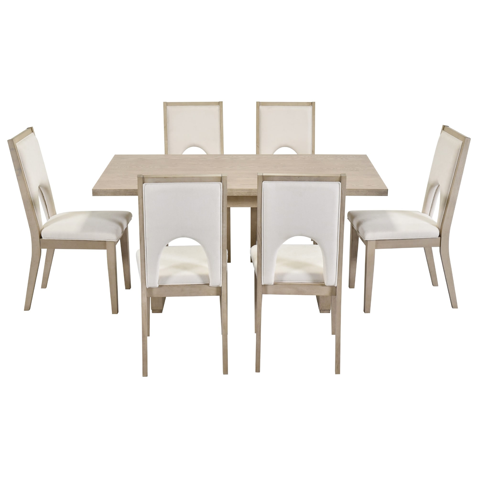 6 Piece Extendable Pedestal Dining Table Set with with 18inch Removable Leaf and 4 Upholstered Dining Chairs & Bench, Natural