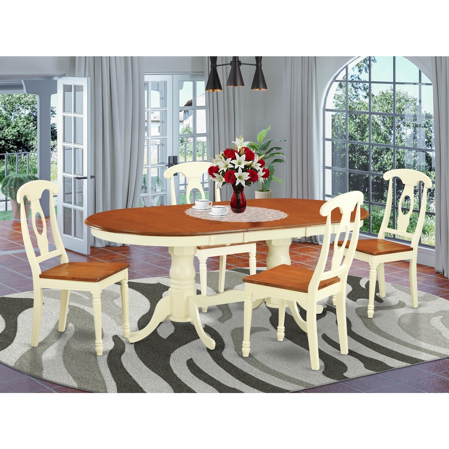 Island Oasis 5 Piece Dining Set for 4 - Oval Table & 4 Chairs - Elegant Kitchen Dining Room Furniture