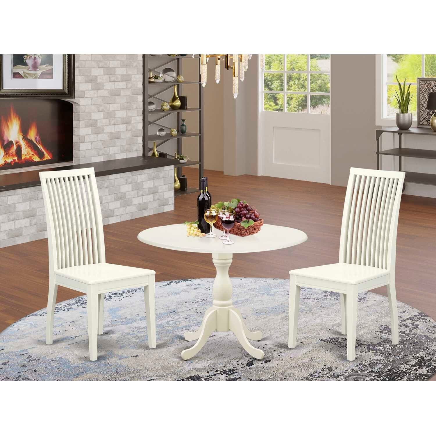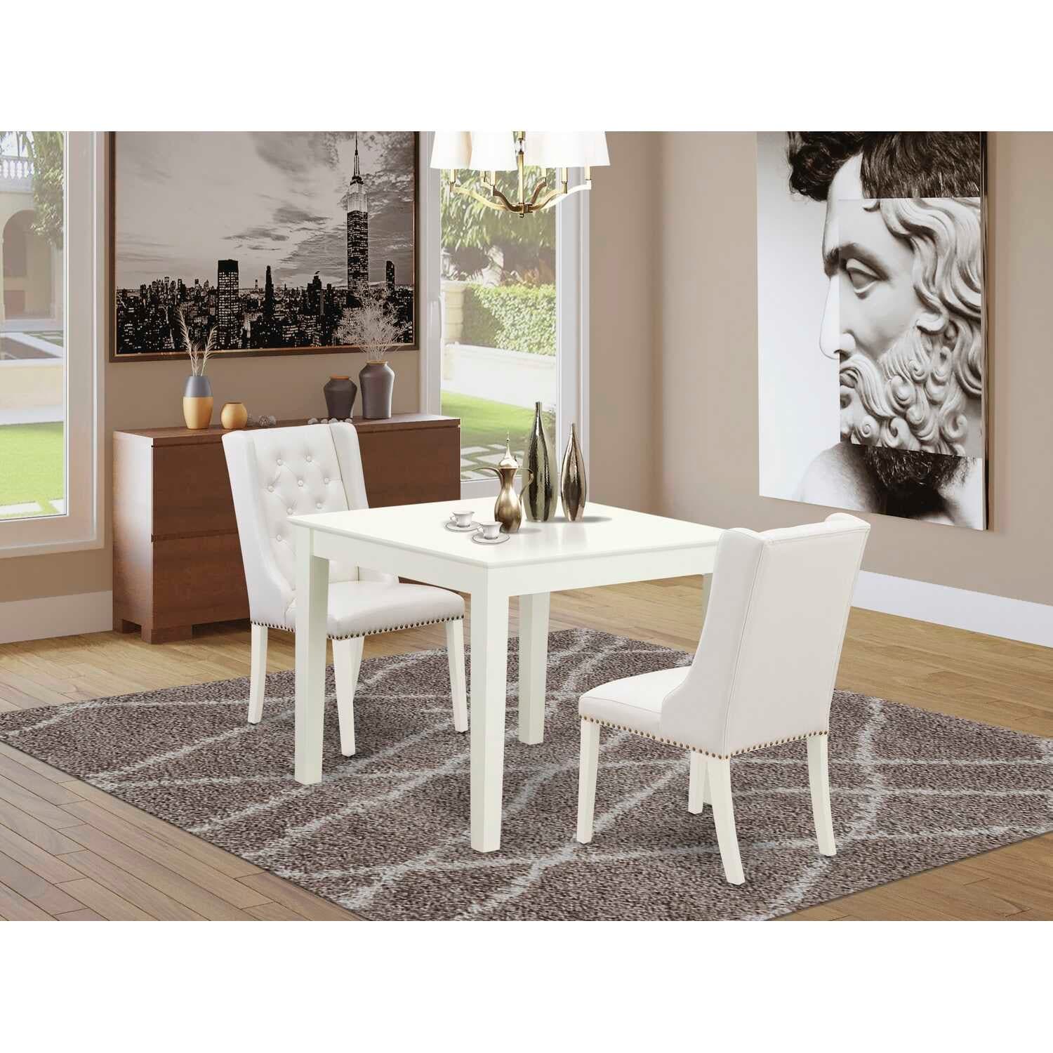 3-Piece Linen White Finish Solid Wood Top - Dining Room Set - Seats 4