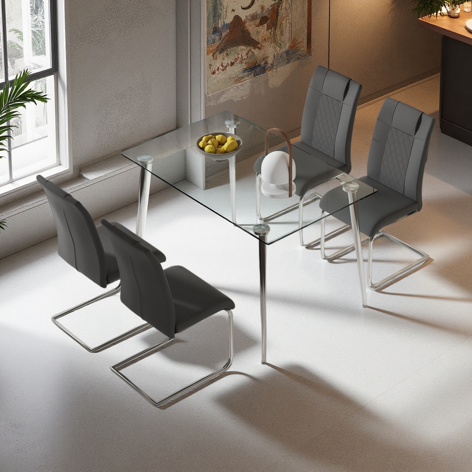 Table and chair set. 51" x 31.5" x 30" glass dining table with 4 dining chairs, modern dining furniture set