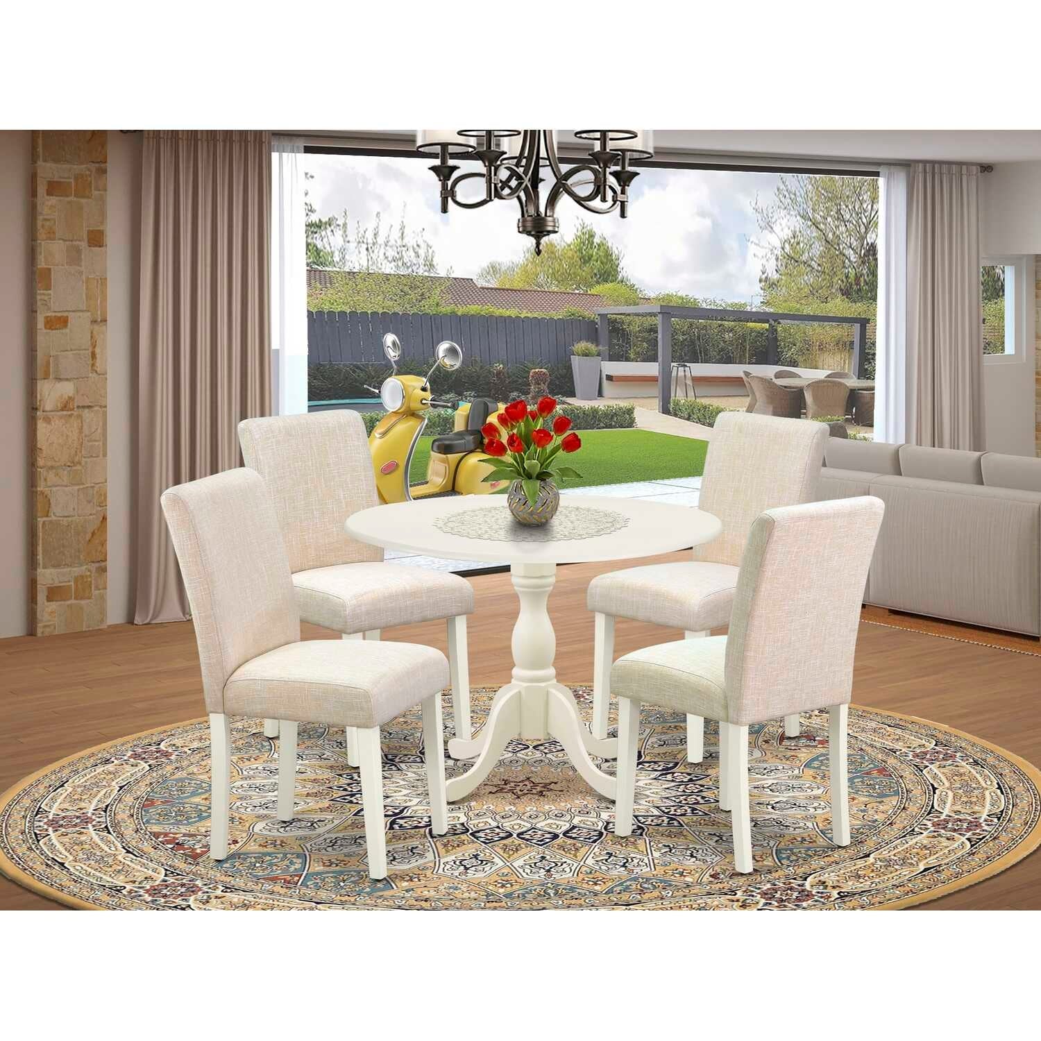 HomeStock 5-Pc Linen White Finish Solid Wood Top Dining table with 4 Chairs with Drop Leaf