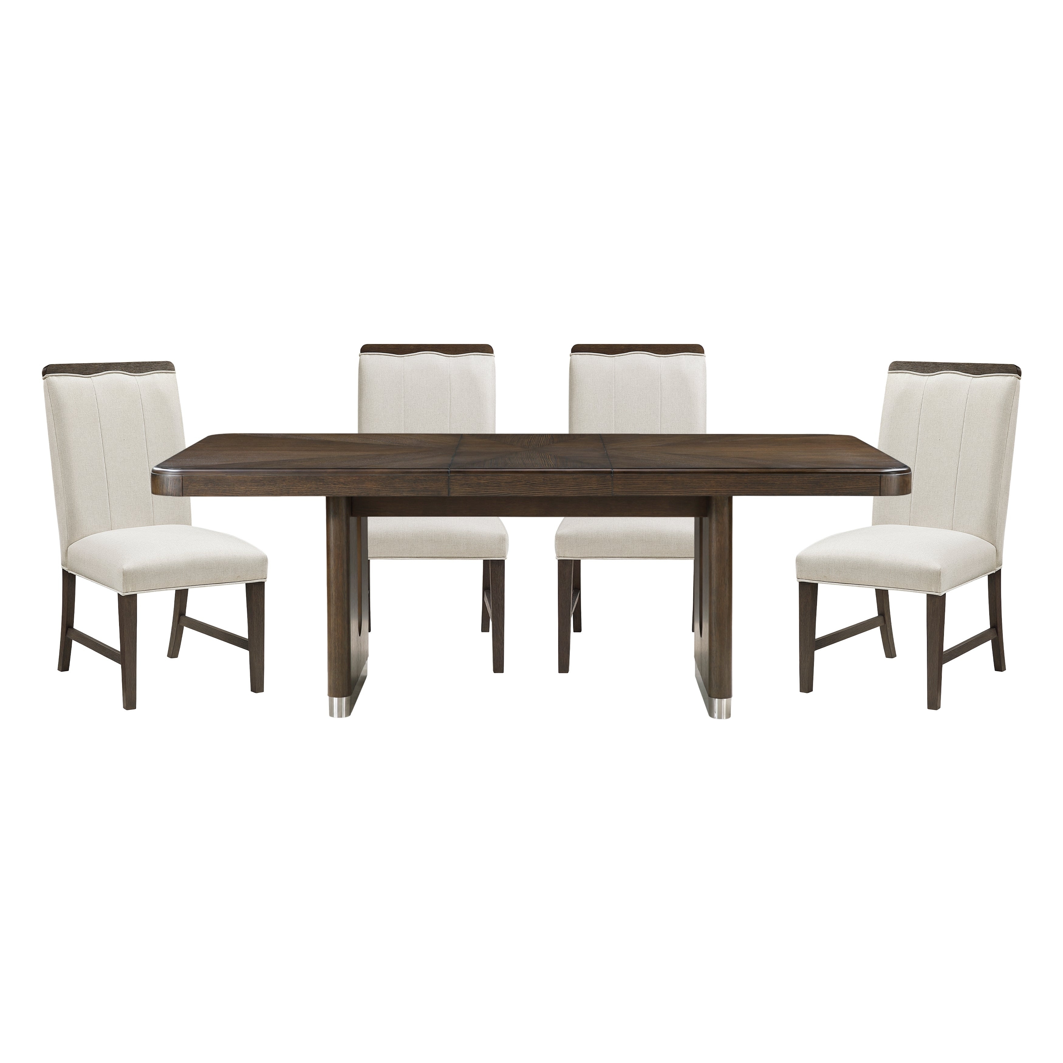 Contemporary Aesthetic Dining Set Extendable Table with Chairs Upholstered Beige Brown Furniture