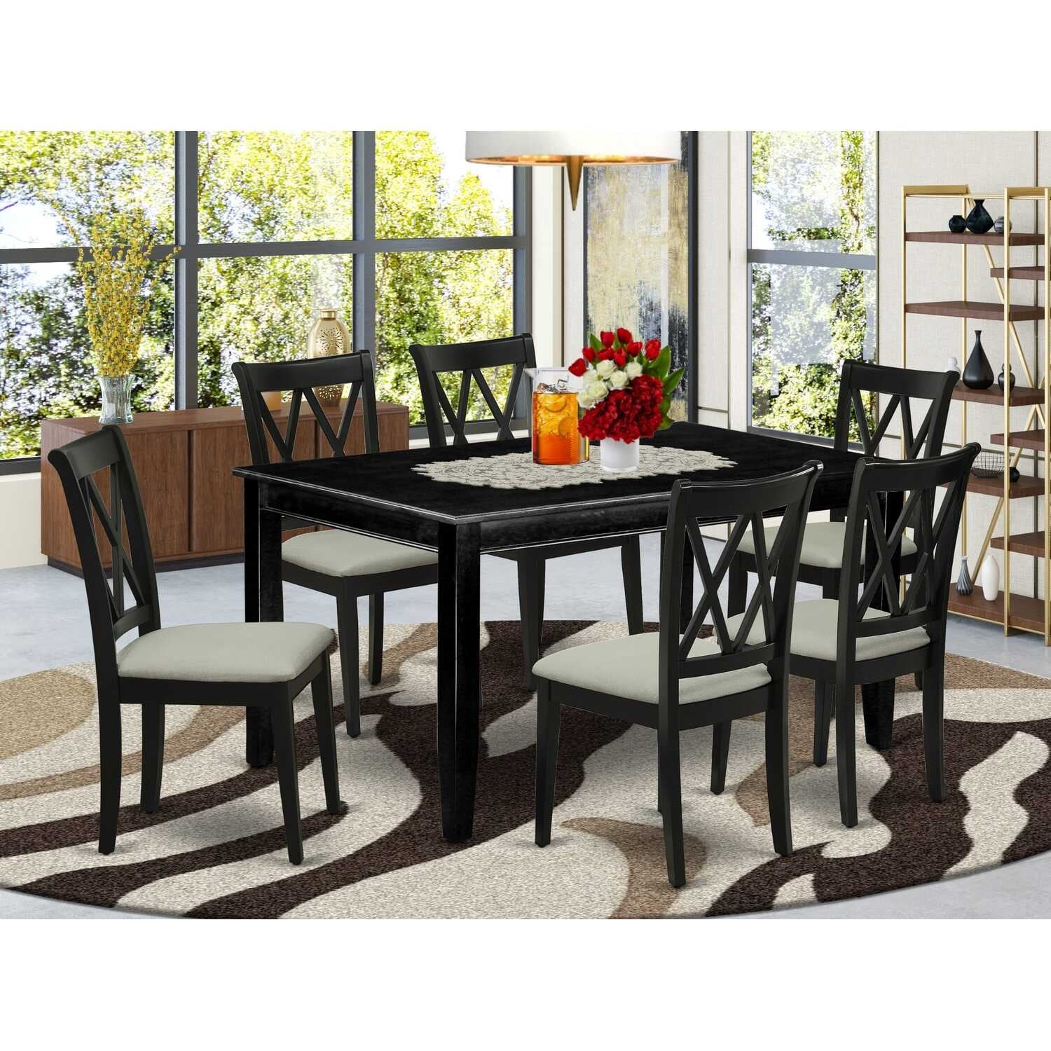 HomeStock 7-Piece Rectangle Black Finish Solid Wood Top Dining Table with 6-Chairs with Cross Back
