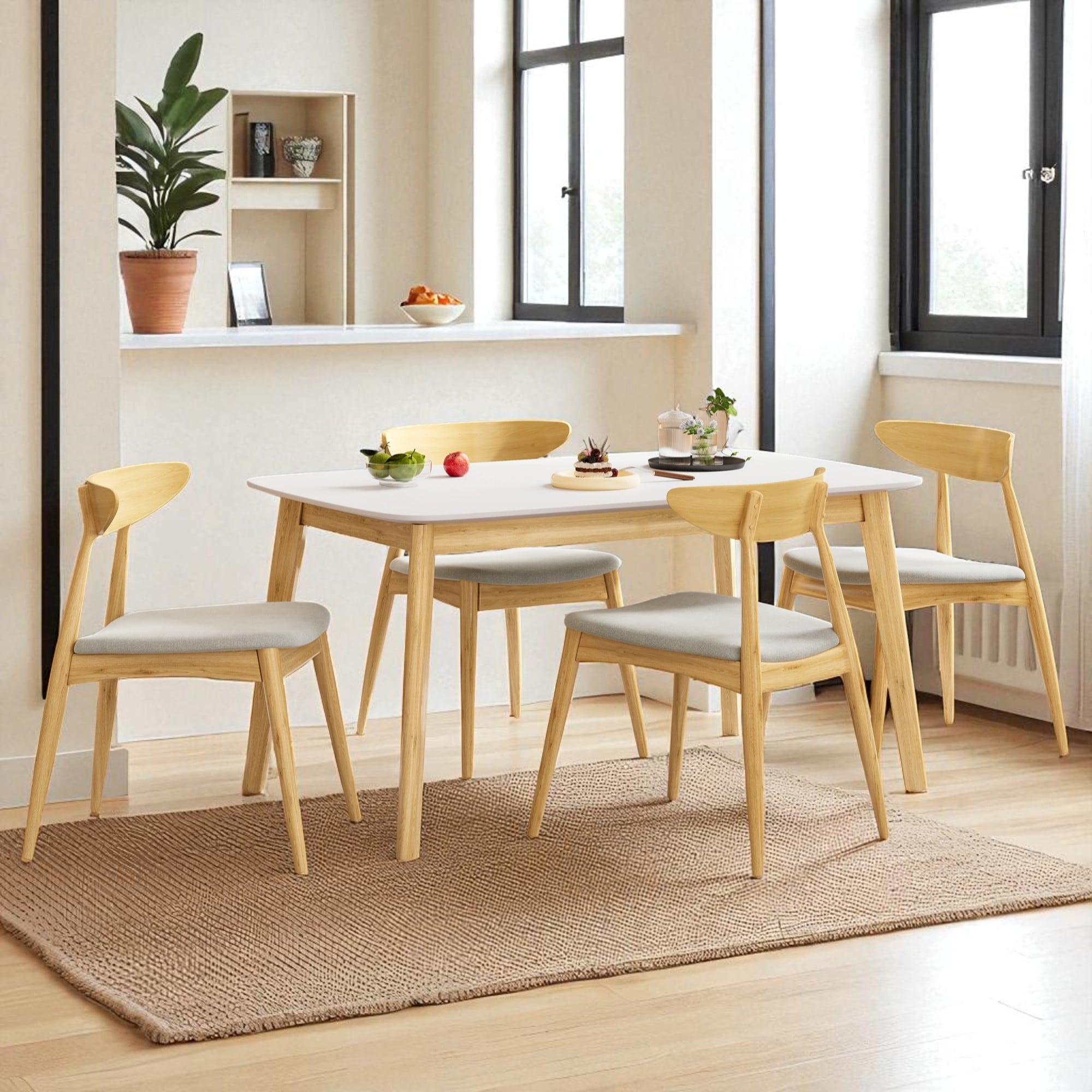 HomeStock 5-Piece Linen White Finish Solid Wood Top Dining table with 4 Chairs