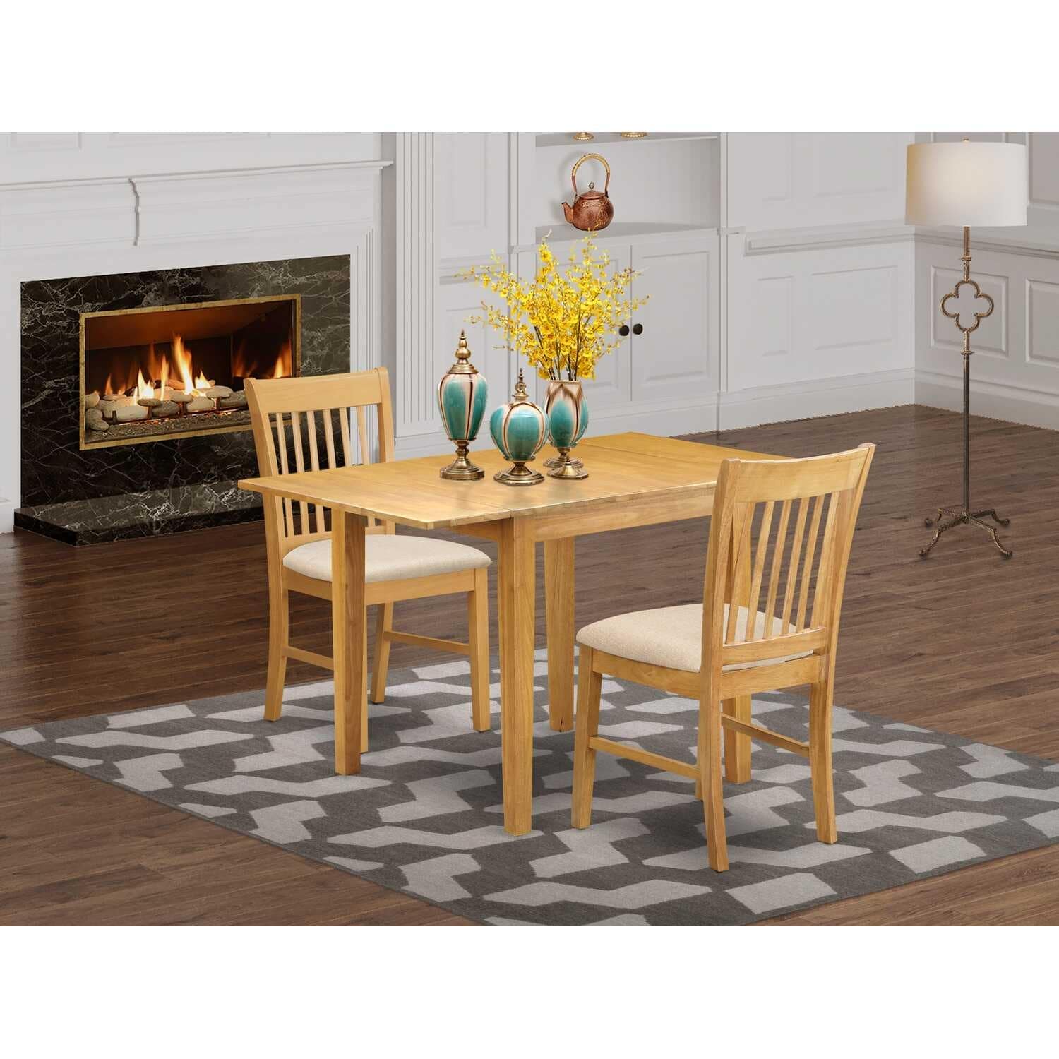 HomeStock 3-Pc Natural Brown Oak Finish Solid Wood Top Dining Table Set