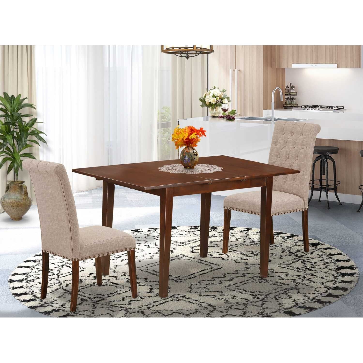 HomeStock 3-Piece Mahogany Finish Rectangular Solid Wood Top With Butterfly Leaf Dining Table Set