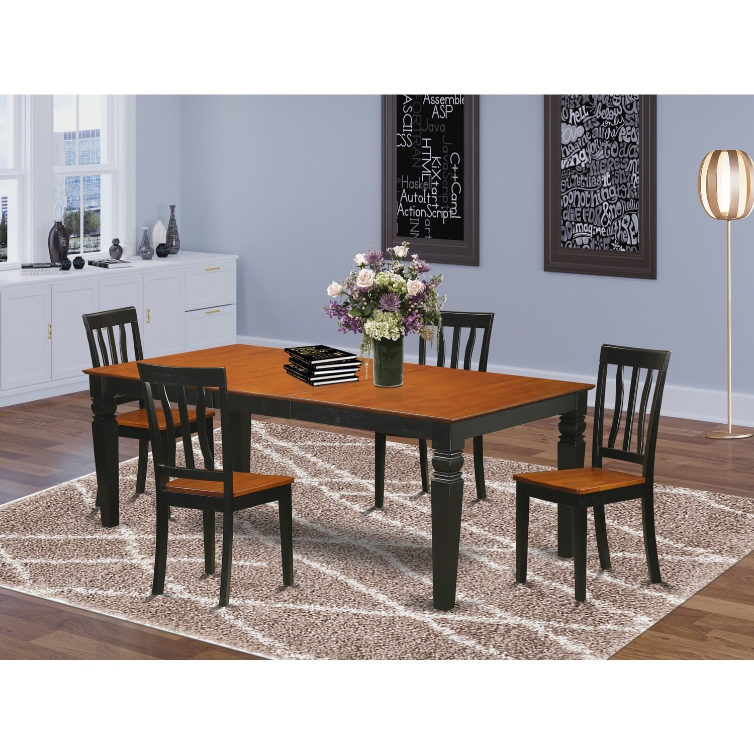 5Pc Dinette Set - 66/84 Inch Rectangle Table w/ Butterfly Leaf & 4 Dining Chairs - Black Finish