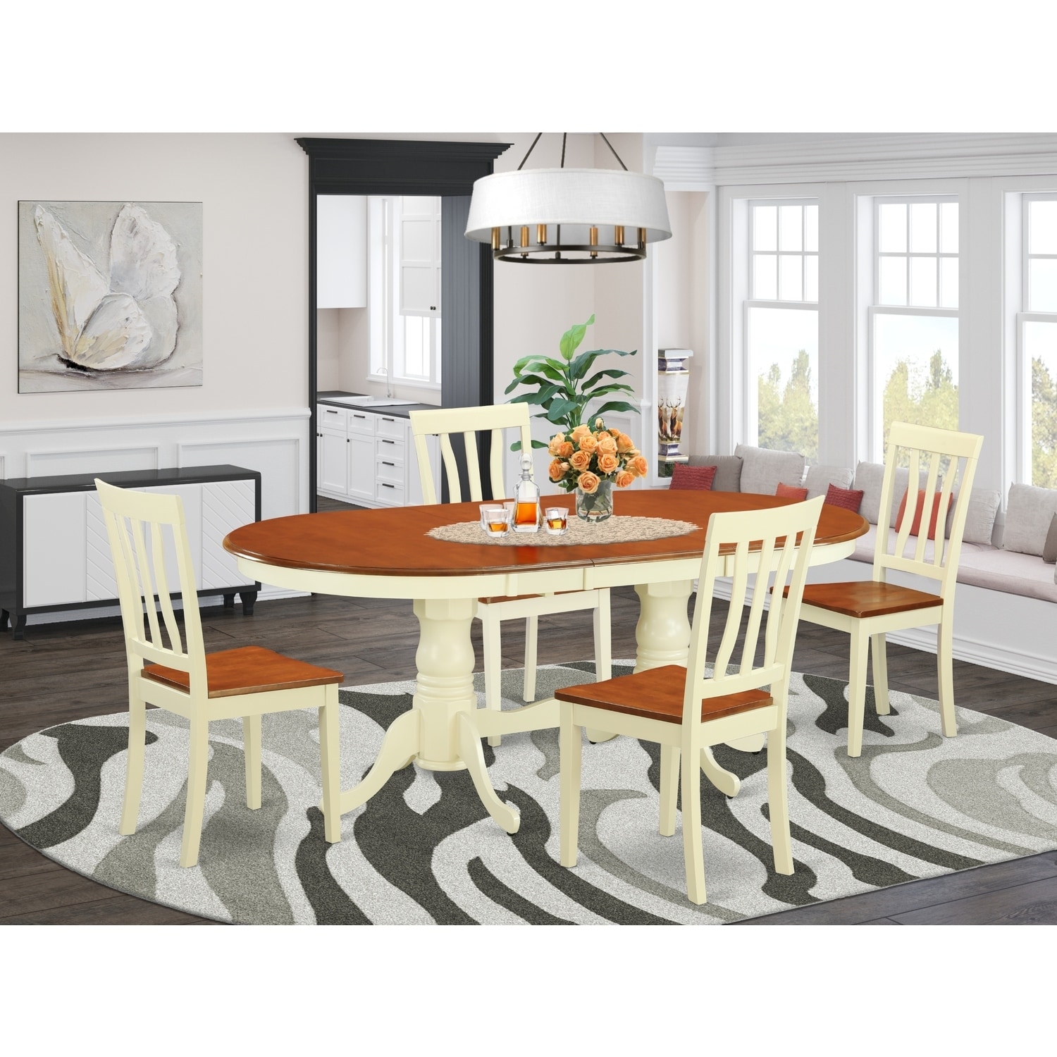 5 Piece Dining Set - Rectangle Table with Butterfly Leaf & 4 Wood Chairs - 42x78 Inch