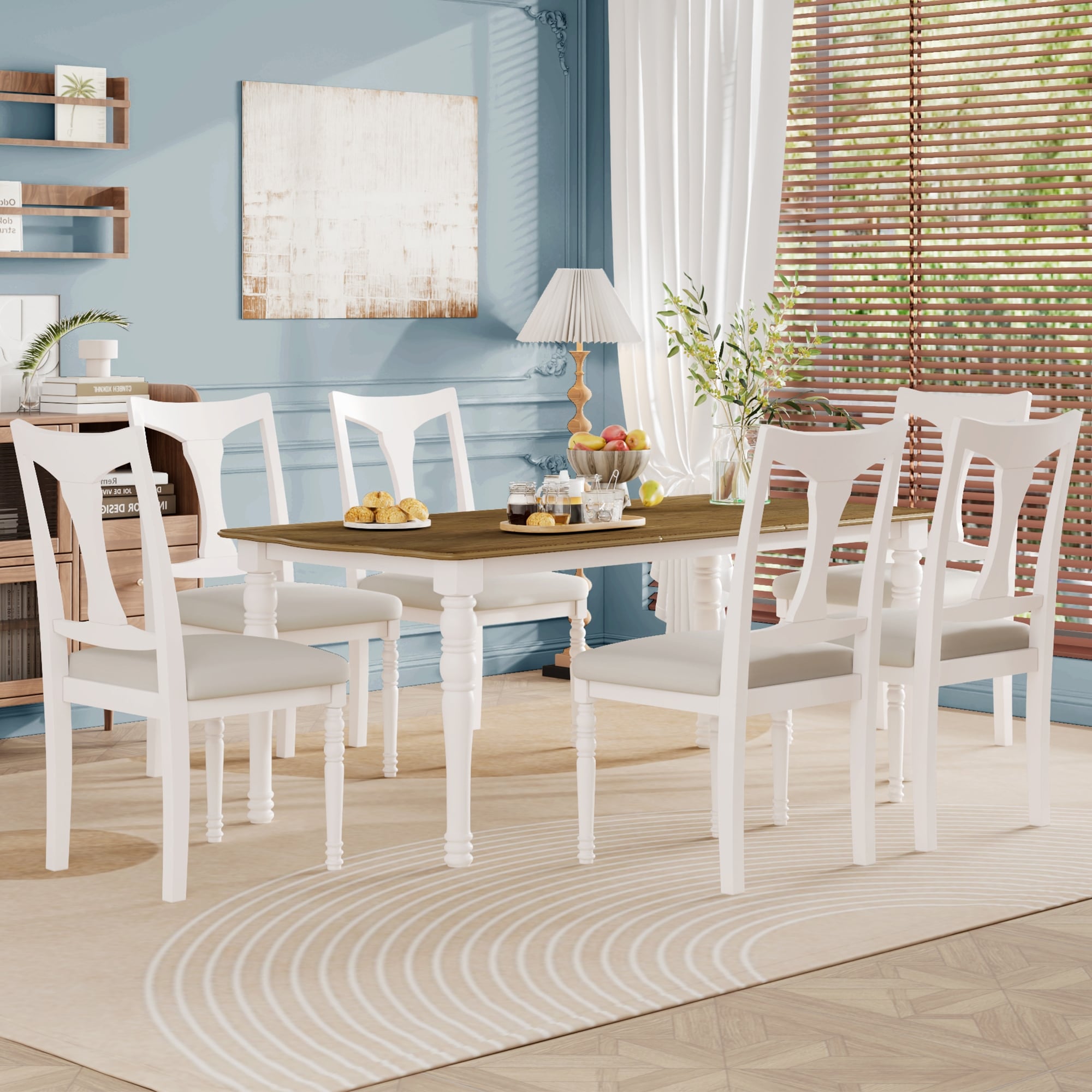 7 Piece Dining Table Set, Extendable Wood Dining Table with Removable Leaf and 6 Upholstered Side Chair, Dining Table Set for 6