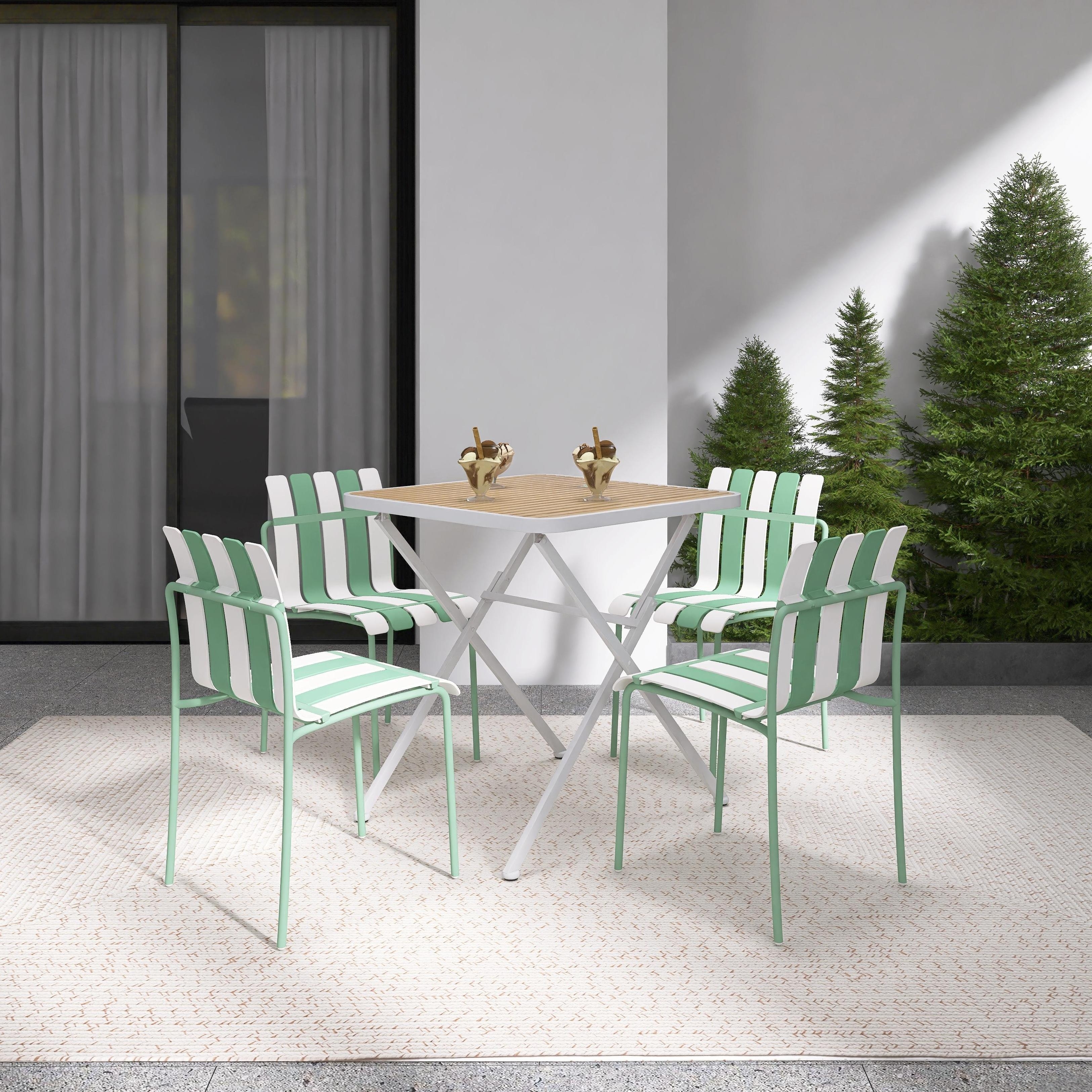 BNK 5 Piece Patio Dining Set, 4 Side Chairs with Waterproof PP Seat & Sturdy Metal Legs, Folding Square PP Table with Metal Legs