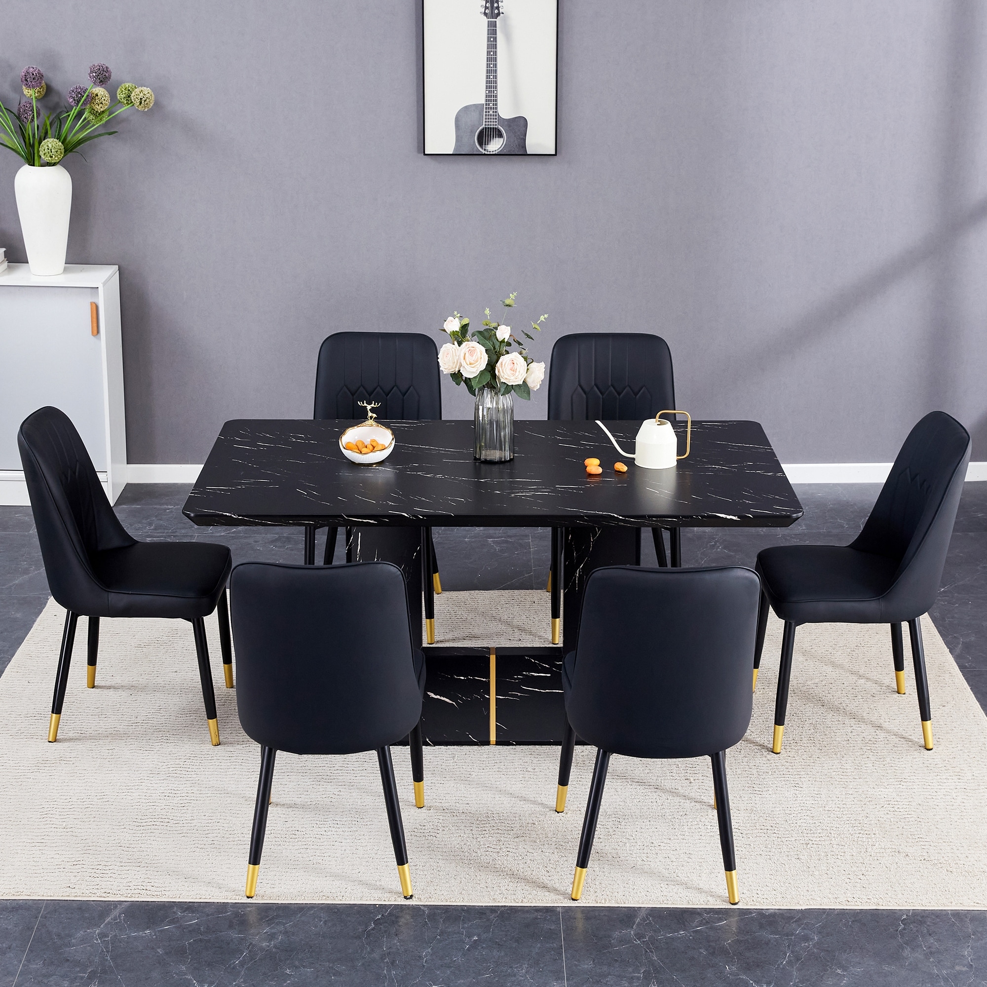 7-Piece Dining Table Set with 55Inch Kitchen Table Set for 6