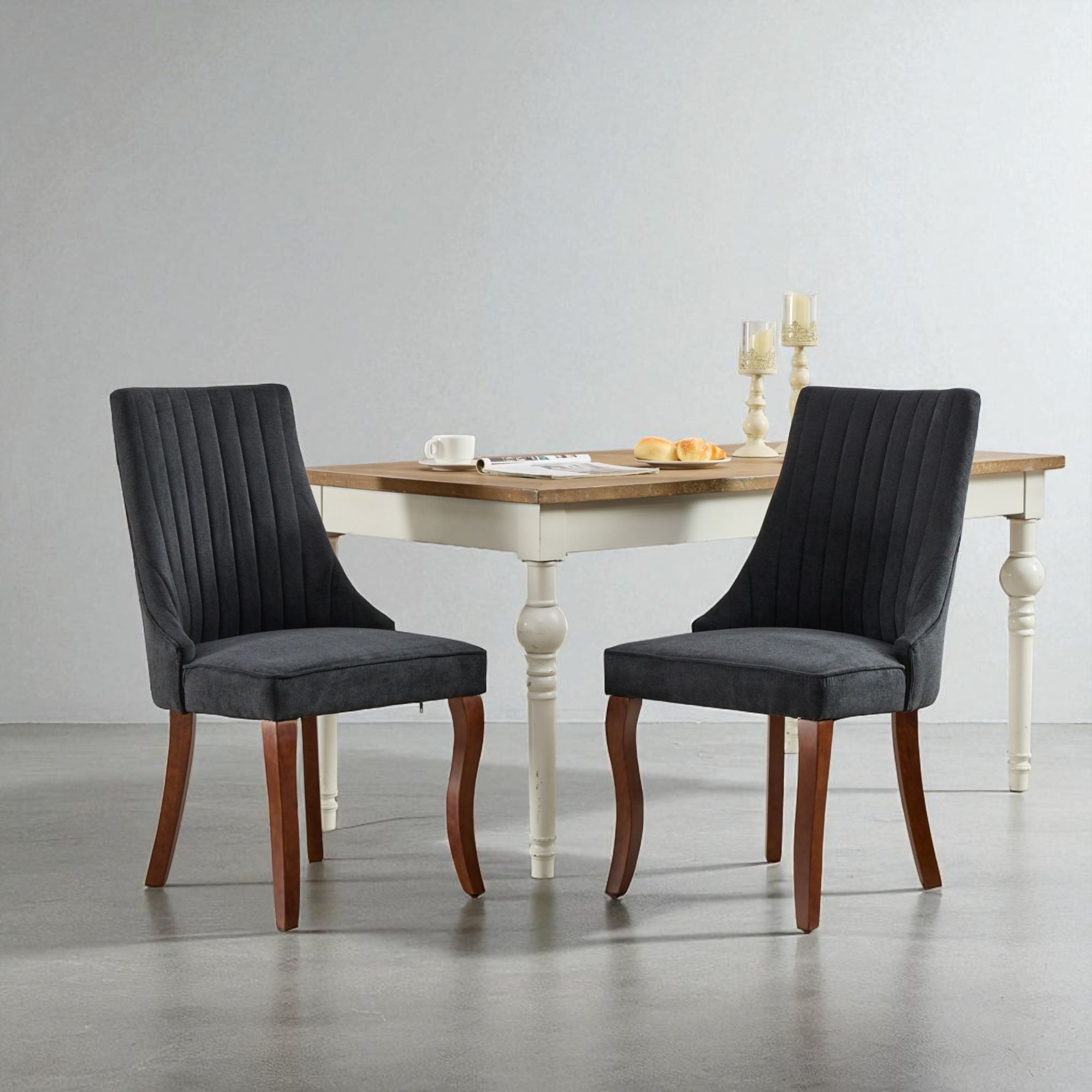 Set of 2 Upholstered Dining Chairs with High Backrest, Rayon Cloth Flocking Linen, Foam Cushion for Dining Room or Kitchen