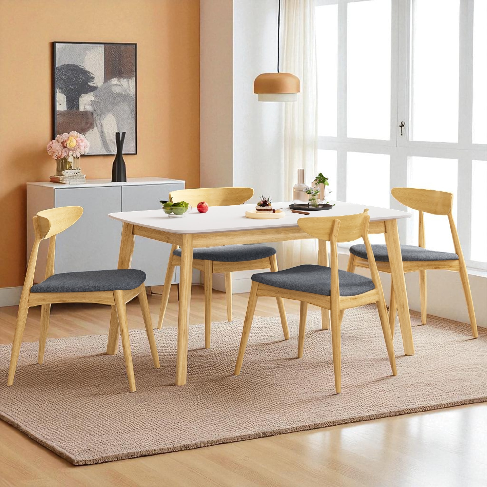 5-Piece Modern Dining Table Set with Faux Wood Top and 4 Upholstered Chairs, Solid Rubberwood Frame for Kitchen or Dining Room