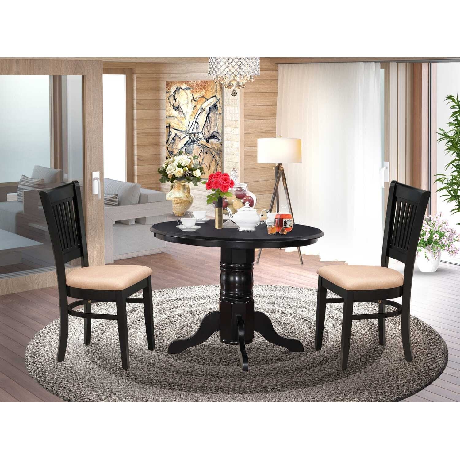3-Piece Black Finish Solid Wood Top - Dining Room Set - Seats 4