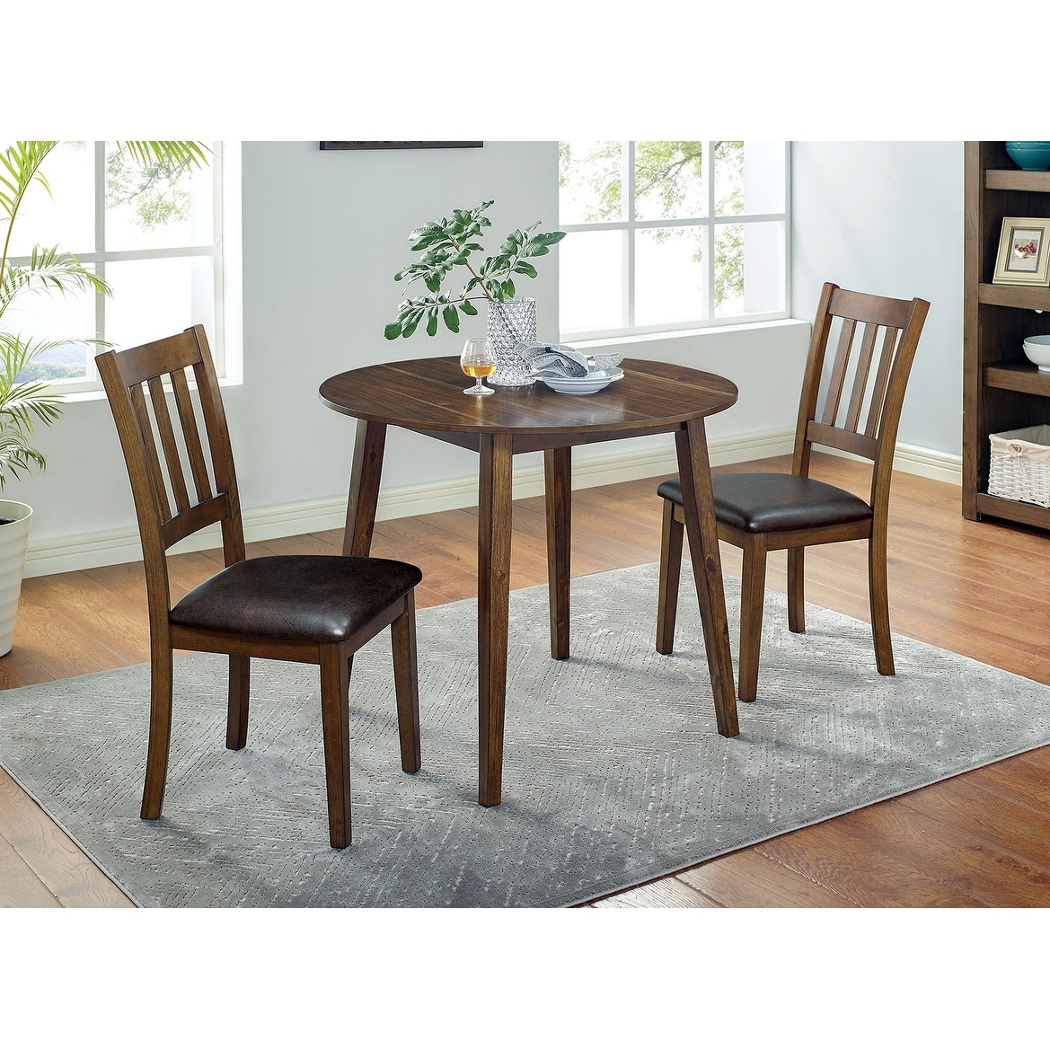 Cozy 3pc Dining Set Round Dining Table And 2x Side Chairs Walnut