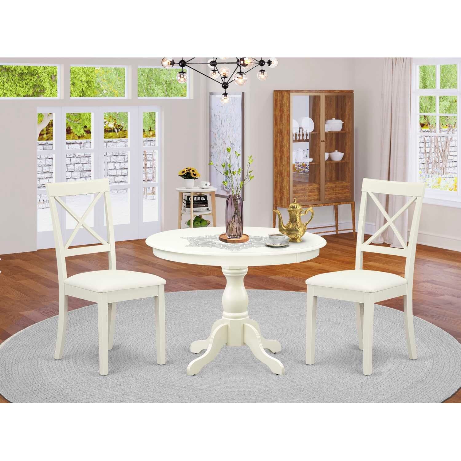 3-Piece Linen White Finish Solid Wood Top - Dining Room Set - Seats 4