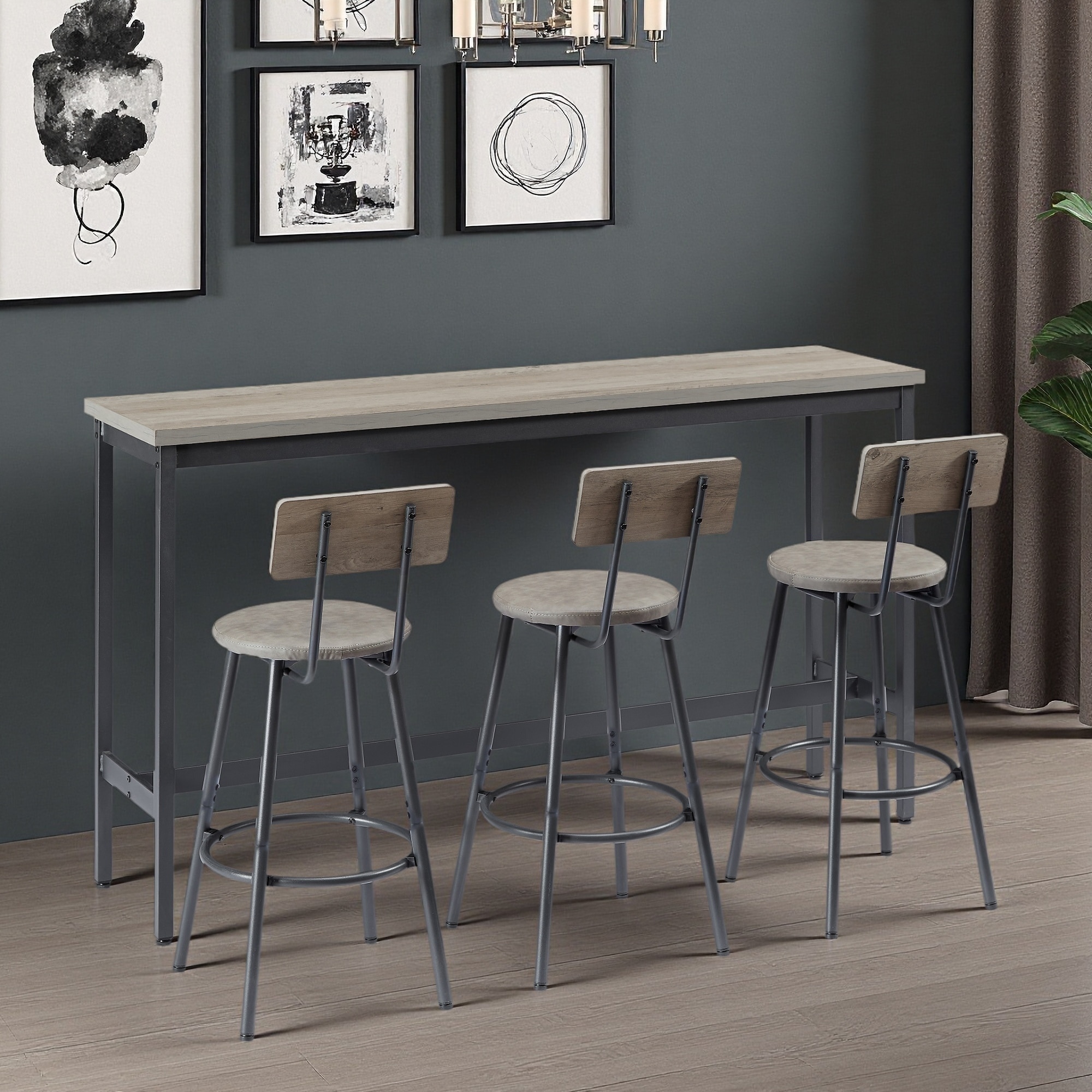 63" Long Bar Table Set with 3 PU Upholstered Bar Stools, Industrial Style for Kitchen, Living Room