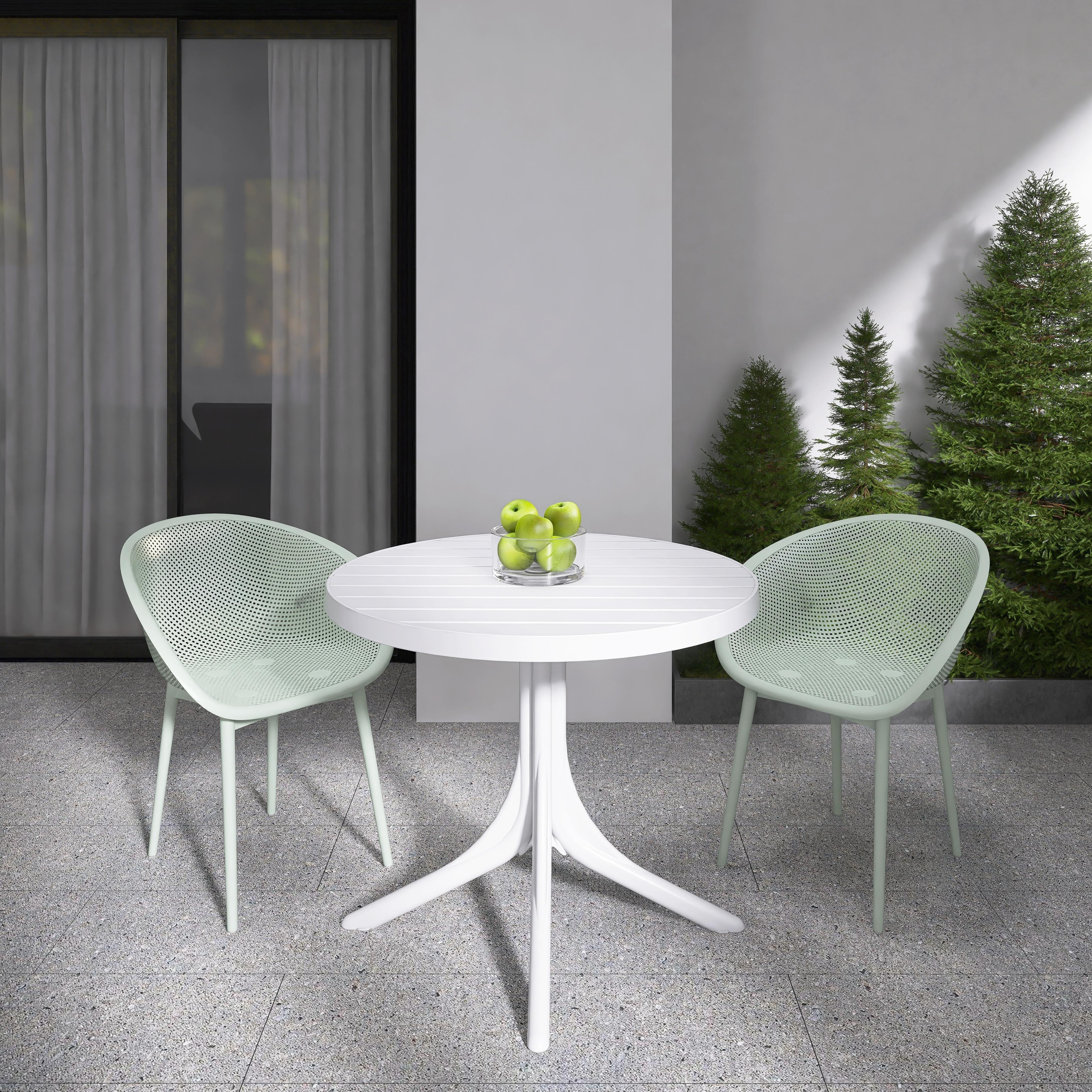 BNK 3 Piece Indoor/Outdoor Dining Set, 2 Waterproof Polypropylene Chairs, 36 Inch White Round PP Table
