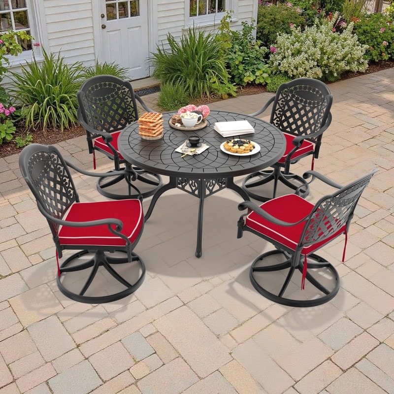 5-Piece Aluminum Round Outdoor Patio Dining Set, 4 Cushioned Swivel Chairs, Table, All-Weather Frames